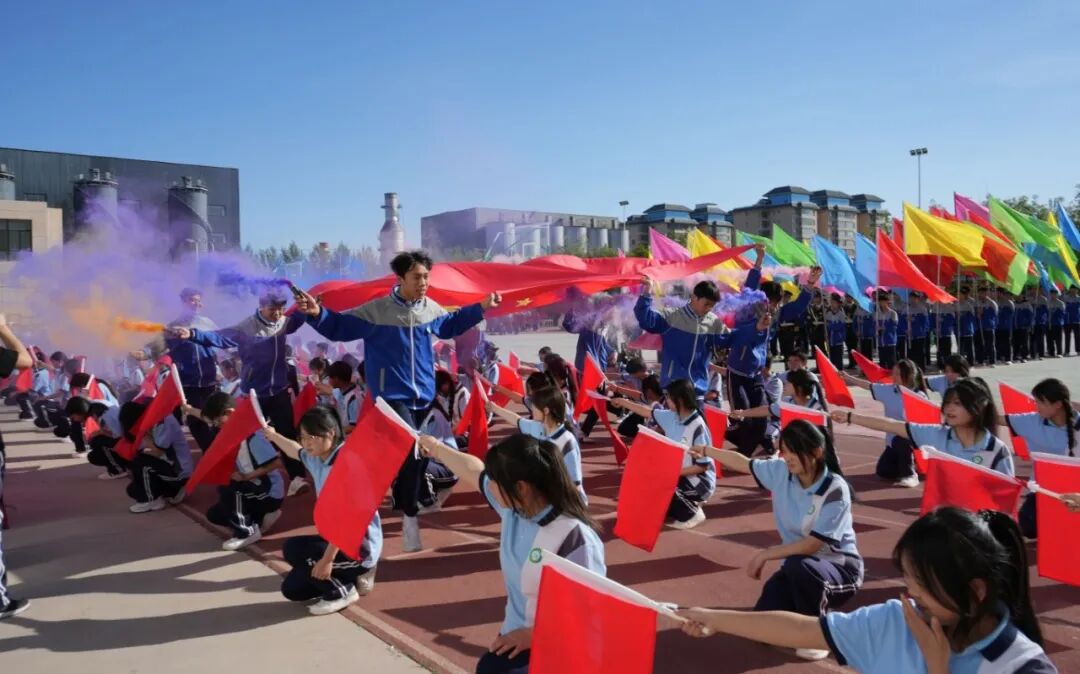 入场仪式结束后,全体肃立,升国旗、奏国歌。鲜艳的五星红旗在校园上空冉冉升起,全场师生面向国旗行注目礼,庄严肃穆的氛围中,爱国情怀与体育精神在每个人心中交融。