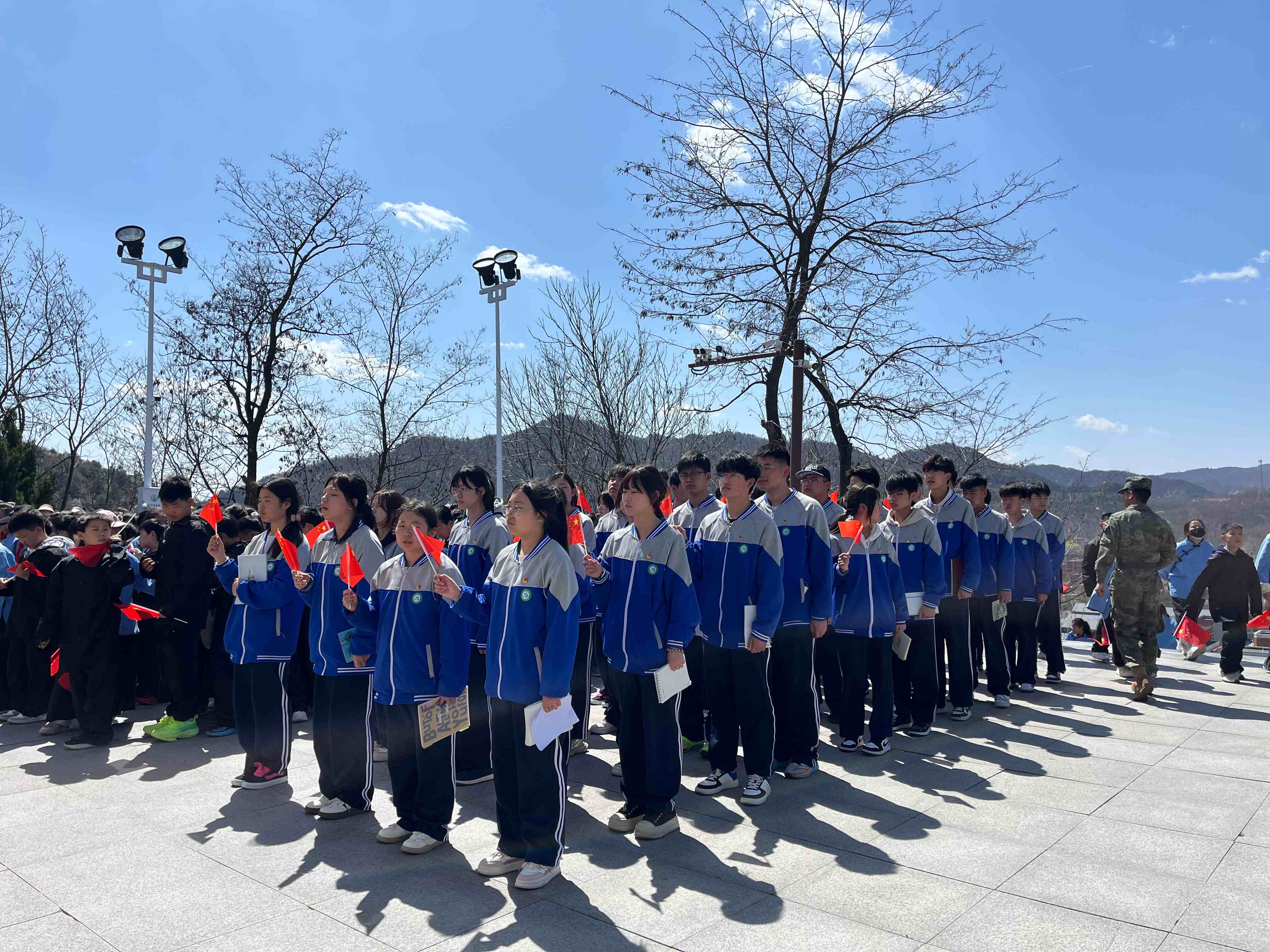 在照金革命英雄纪念碑前,全体师生举行庄严缅怀仪式。大家整齐列队、神情肃穆,向纪念碑敬献花篮、深深鞠躬,表达对革命先烈的无限追思与崇高敬意。
