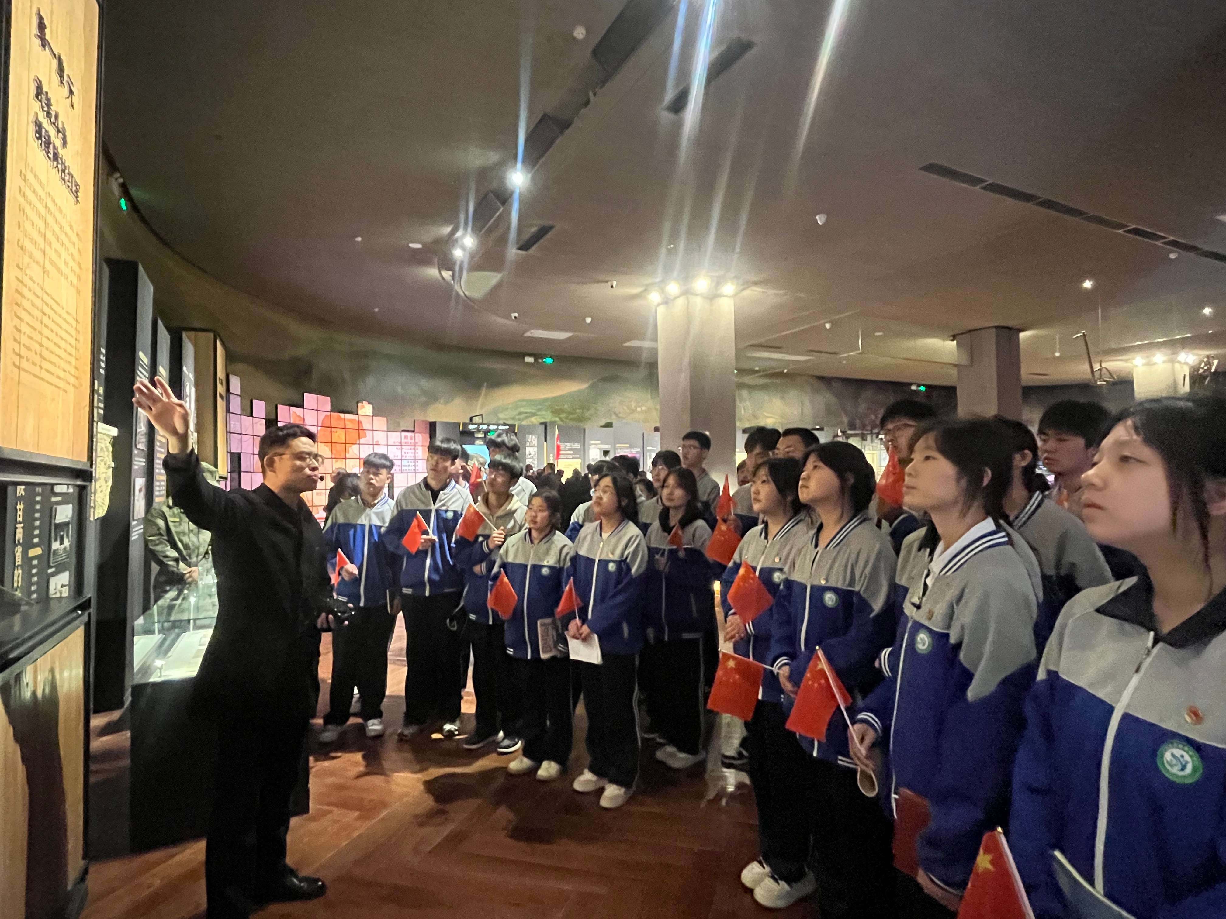 在薛家寨实地教学中,师生们走进红色文化VR体验馆,借助现代科技沉浸式重温革命岁月。炮火纷飞的战场、紧张激烈的战斗场景、革命先辈坚毅无畏的神情跃然眼前,让历史从书本文字变为可感可触的真实体验。科技与红色文化的深度融合,进一步增强了同学们传承红色基因的责任感与使命感。