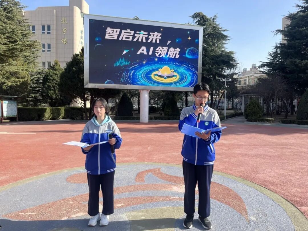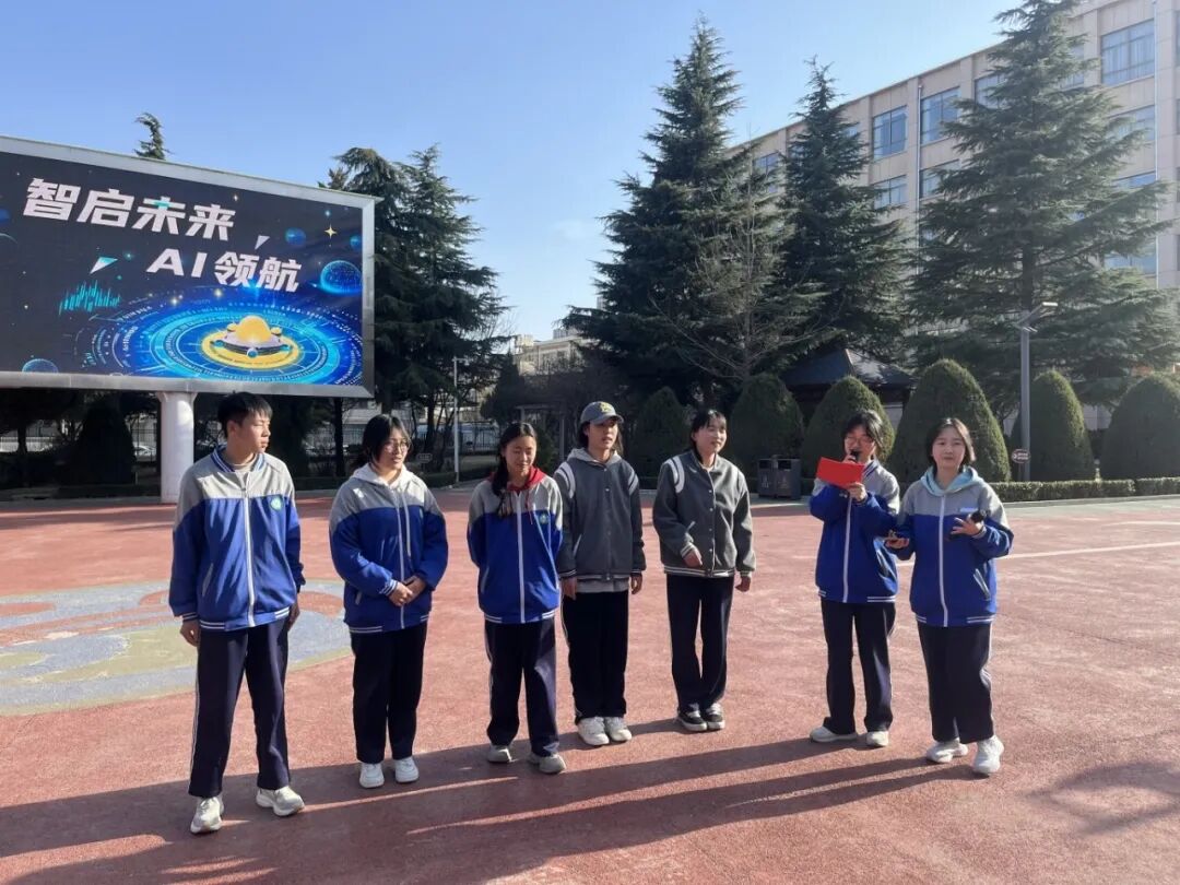 活动伊始,校园电子大屏滚动播放 “AI 知识讲堂” 视频,生动地展现了 AI 从诞生到蓬勃发展的历程,深入浅出地介绍了其在医疗、交通、金融、教育等众多领域的广泛应用,以及充满无限可能的未来趋势。同时,校园内布置了AI系列展板、各班组织了AI主题班会,由解说员为同学们详细科普人工智能的基本概念和核心技术,让大家对 AI 有了更深入的认识。