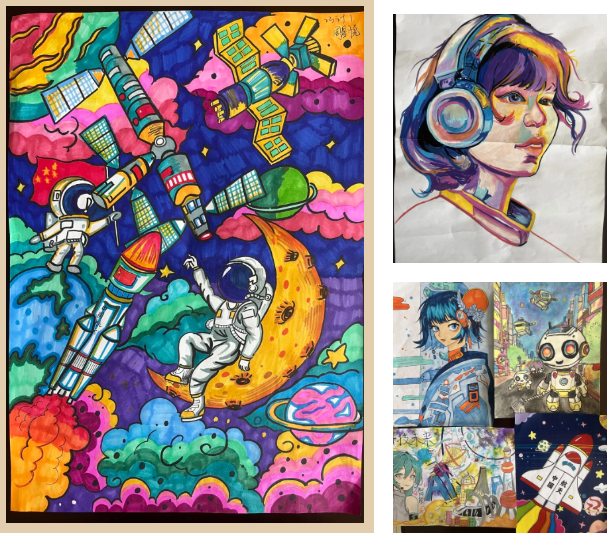 活动最后还设置了AI 创意作品征集环节。同学们充分发挥奇思妙想,提交了大量令人眼前一亮的作品,每一件作品都凝聚着同学们的智慧与创造力,展现了他们对AI技术的独特理解和创新应用。